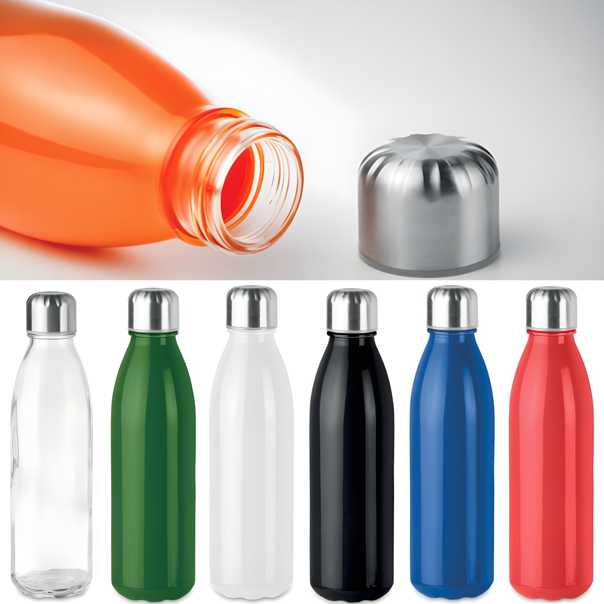 Upgrade your hydration routine with our Aspen Glass Water Bottle featuring a stainless steel lid and a 650ml capacity. Perfect for non-carbo