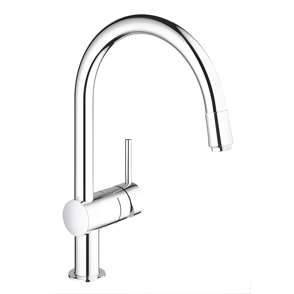 Introducing the Grohe MINTA Kitchen Faucet in sparkling chrome finish, featuring a pull-out spout for optimal comfort and precision in kitch