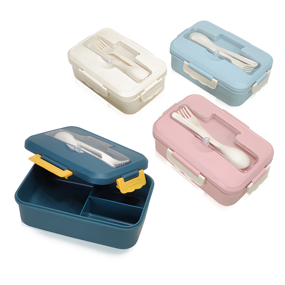 ברקפסט - קופסת אוכל שומרת טריות מבית I-COLOGY, מחולקת ל-3 תאים וכוללת סכו"ם אישי במכסה עם מזלג וכף. מצוידת ב-4 קליפסים לסגירה ואטימה מל
