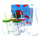 Additionally, a designer carafe and 4 fun shake cups with straw and lid.