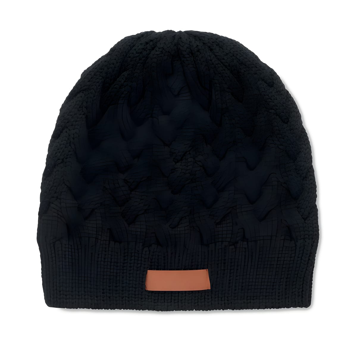 העניקו לעצמכם את תחושת הנוחות עם כובע כבלים מבד RPET ממוחזר הכולל אזור הדפסה בהתאמה אישית. כובע זה לא רק שומר עליכם חמים בעונת החורף, אלא גם