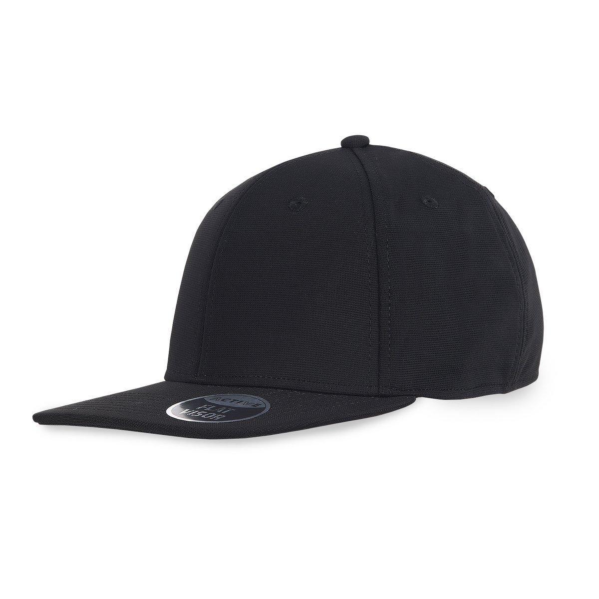 Closed-back design with a flat brim.