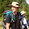 This wide brim cowboy style hat offers perfect protection from the sun and UV rays. Lightweight with adjustable side snaps and a drawstring