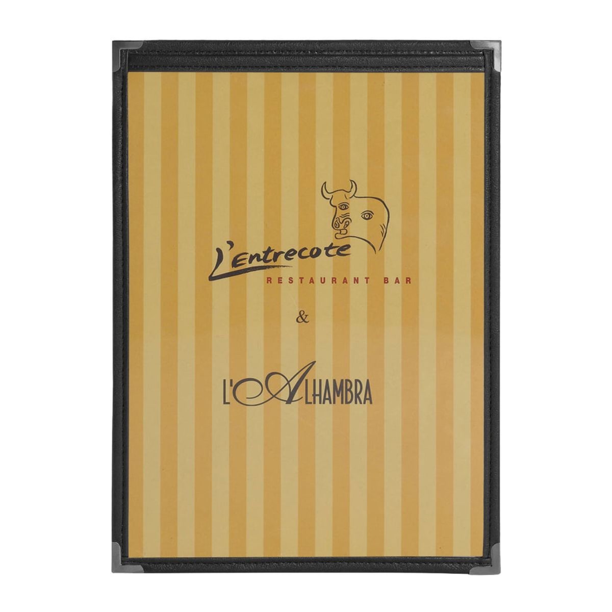 העניקו לתפריט שלכם מראה יוקרתי עם אוגדן שקוף דו צדדי בגודל A4. הכריכה האיכותית דמוית עור והפינות המתכתיות מבטיחות עמידות ואלגנטיות. אידיאלי