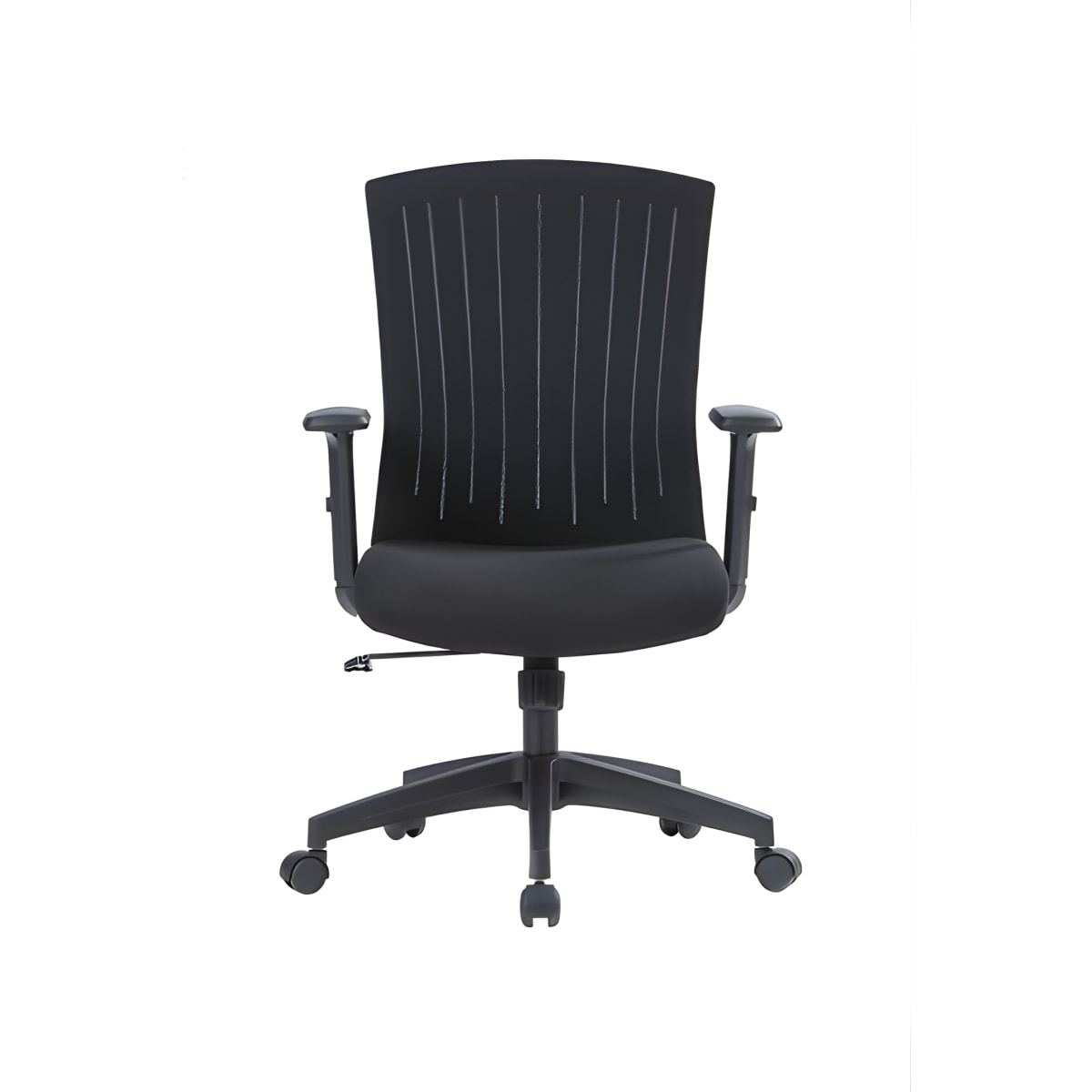 The perfect executive chair for blending comfort and style. Features a plush black seat, ventilated mesh back, and mechanical mechanism with lock for full control and optimal support. Includes adjustable arms and a sturdy nylon base.