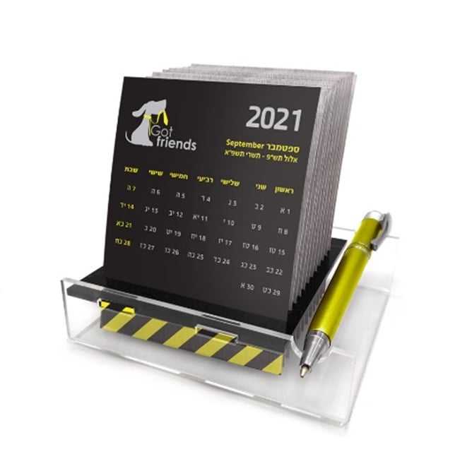 לוח השנה המחורץ עשוי פלסטיק שקוף ושחור, כולל 12 כרטיסיות צבעוניות ועט להוספת הערות. אידיאלי לשימוש יומיומי ולתכנון חודשי מדויק. גודל קומפקטי: 11.5X10X3 ס"מ, מתאים לכל שולחן עבודה.