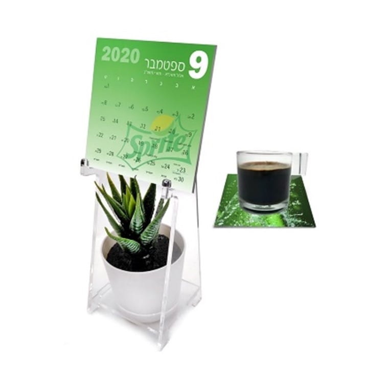 לוח שנה שולחני מעוצב עם תחתיות כוסות מעוצבות