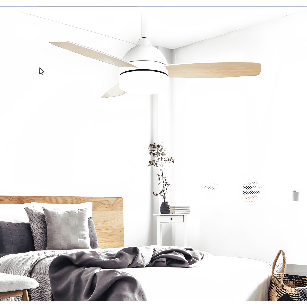מאוורר תקרה לבן בעיצוב מודרני עם מנוע חזק ושקט. מאפשר בחירת גוון כנפיים בין עץ ללבן ושליטה דרך שלט מתקדם. המאוורר כולל תאורה 25W עם אחוזי בח