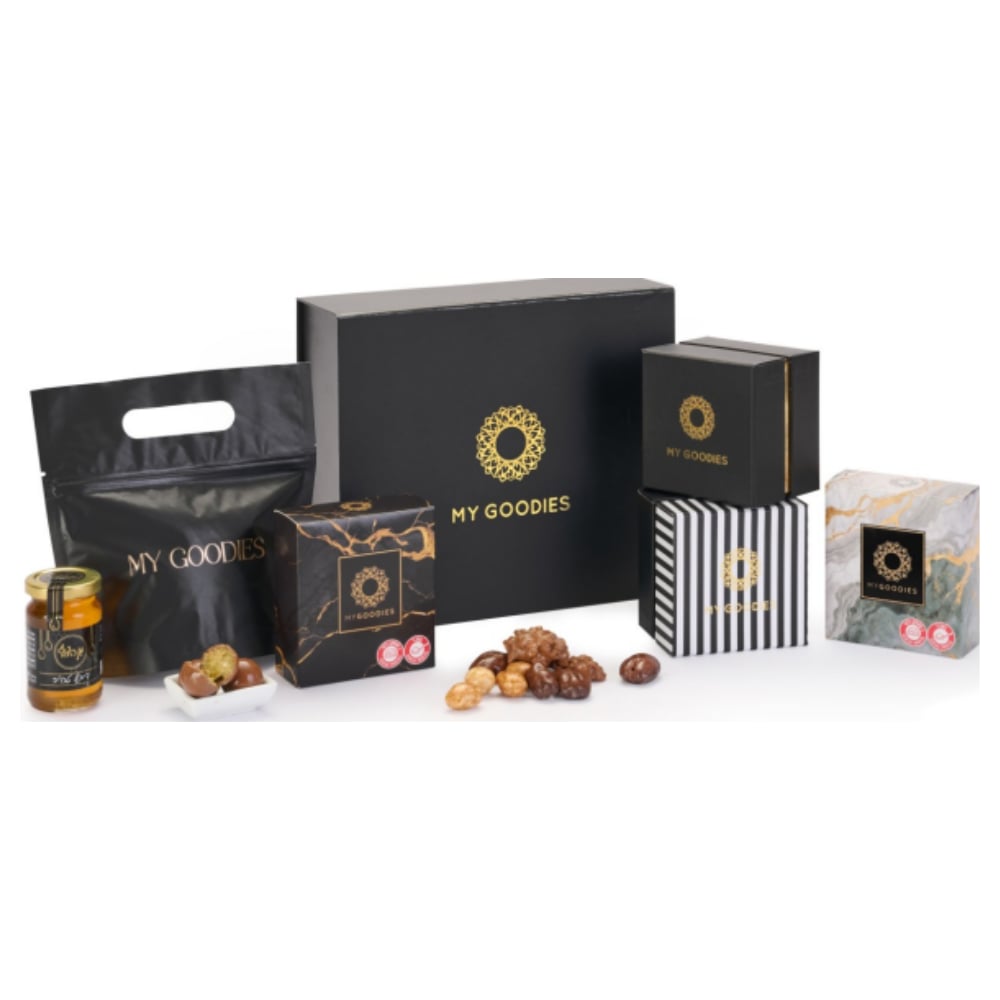 נגה - פרלין דובאי- פרליני שוקולד חלב עם קרם פיסטוק ושערות קדאיף דבש מן הצוף – דבש טהור מקומי, סדרת מעדני "מן הצוף" , 130 גרם ספיר - אגוזי קשיו בעיטוף שוקולד לבן ונגיעות קפוצ'ינו ספיר - פרליני שוקולד חצי שוקולד לבן וחצי שוקולד חלב עם קרם קקאו קורל - קלסטרס)אשכולות( שוקולד חלב עם שברי בייגלה ממולח קורל – אגוזי פקאן מקורמלים בעיטוף שוקולד מריר