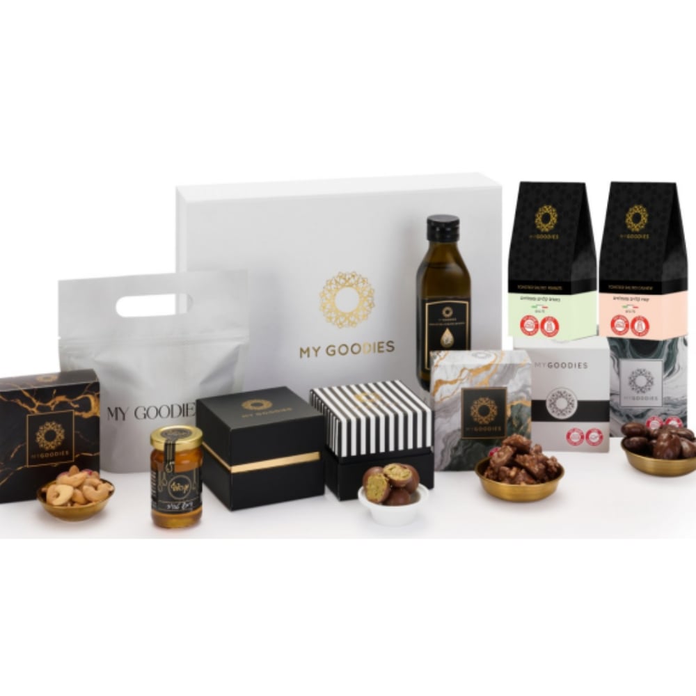 מארז גלקסי המכיל שמן זית , מתוקים ופיצוחים