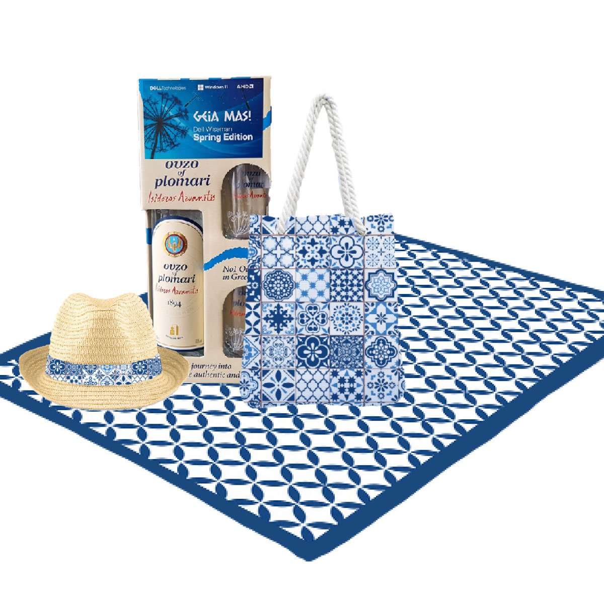 מארז מסיבה יוונית מקורי מביא את הרוח של יוון היישר אליכם! המארז כולל כל מה שצריך לחוויית בילוי יוונית אמיתית ושמחה, עם מיתוג אישי ומיוחד. המארז כולל: - מחצלת זוגית מעוצבת בהדפסה מלאה - תיק צד יוקרתי ואופנתי, ממותג בהדפסה מלאה - מארז אוזו מהודר עם 2 כוסות ומיתוג אישי לבחירה - כובע קש מעוצב עם מיתוג אישי להזמנה עם 'מסיבה יוונית', גם מי שנשאר בארץ יכול להרגיש את האווירה של האיים היווניים.