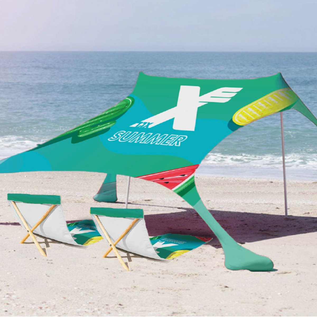 מארז חווייתי לחוף עם ציליה וכיסאות מגבת מתקפלים