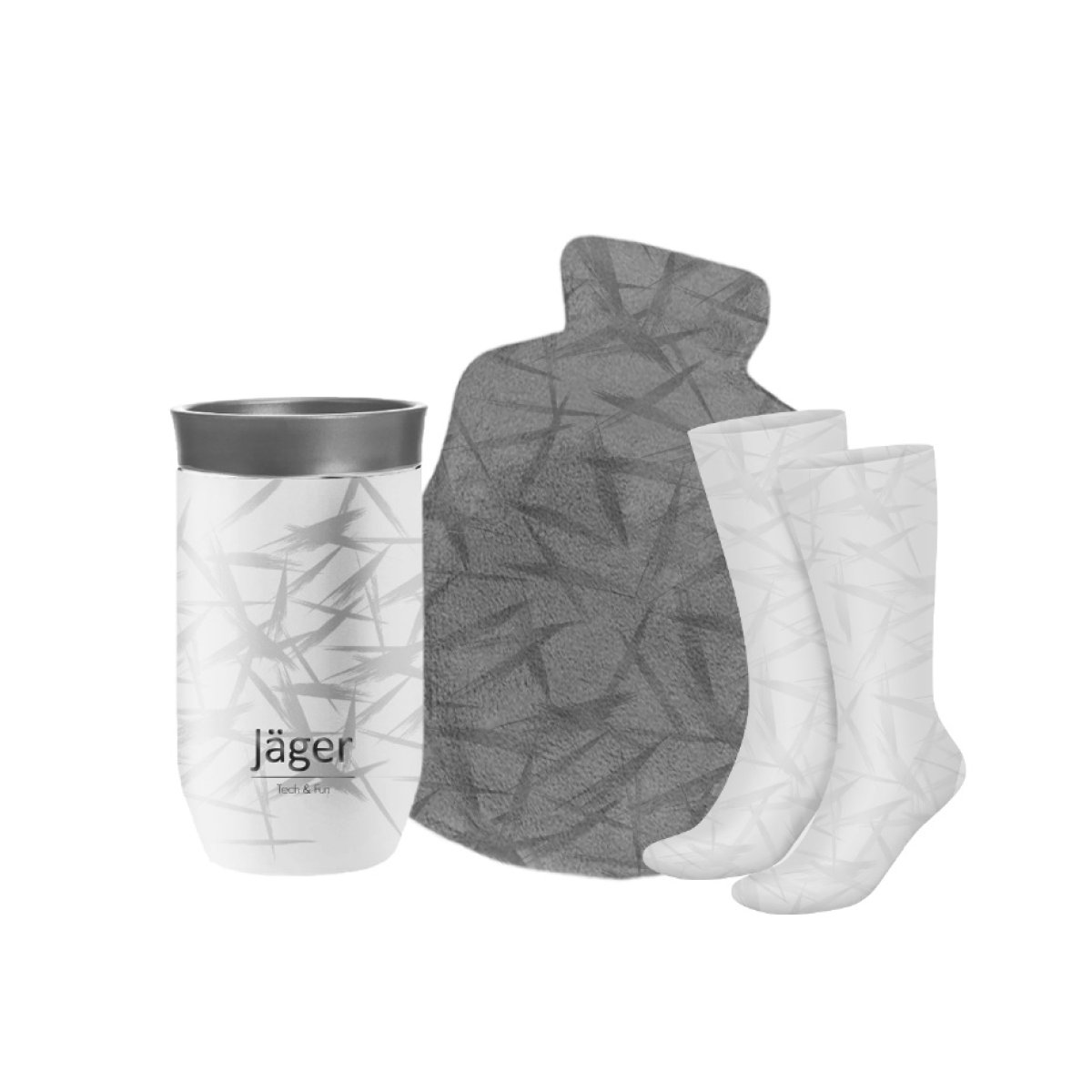 היכנסו לקור עם מארז חימום מושלם למשרד! המארז כולל גרביים ממותגות, בקבוק חימום עם כיסוי בד פליז בהדפס צבעוני מלא, וכוס תרמית איכותית של המותג Jager מנירוסטה עם דופן כפולה ומנגנון סגירה מיוחד למניעת נזילות. אידיאלי לשמירה על חום ונוחות במהלך היום.