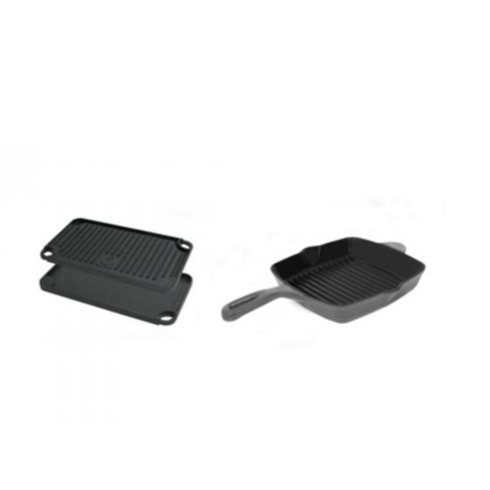 Discover the ultimate cooking set for home chefs and camping enthusiasts: a cast iron skillet and grill pan for versatile use at home and ou