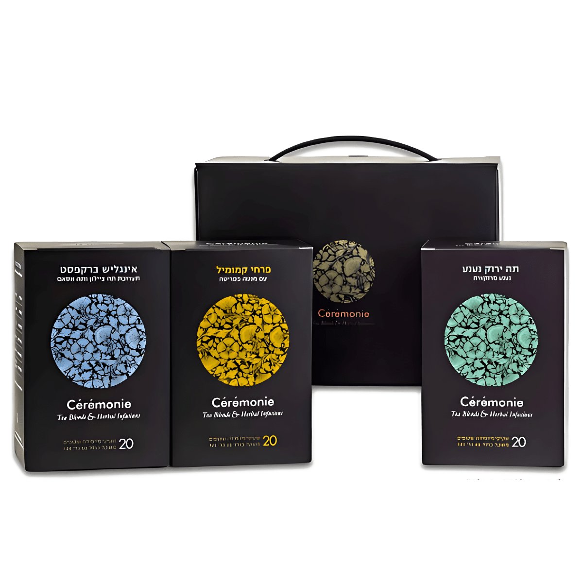 מארז שבתאי מבית סרמוני המארז מכיל: מארז 20 שקיקי פירמידה - ירוק נענע מארז 20 שקיקי פירמידה - אינגליש ברקפסט מארז 20 שקיקי פירמיד