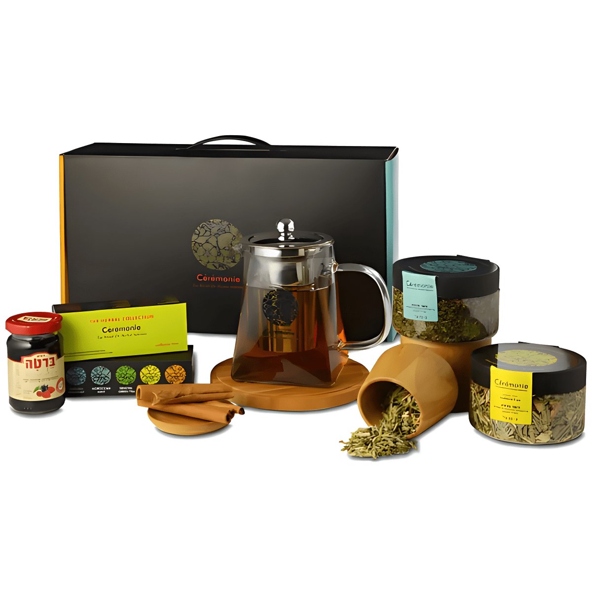 מארז שיחנית מבית סרמוני המארז מכיל: קנקן זכוכית סרמוני 750 מ"ל תפזורת בצנצנת פלסטיק מהודרת - לימונית לואיזה תפזורת בצנצנת פ