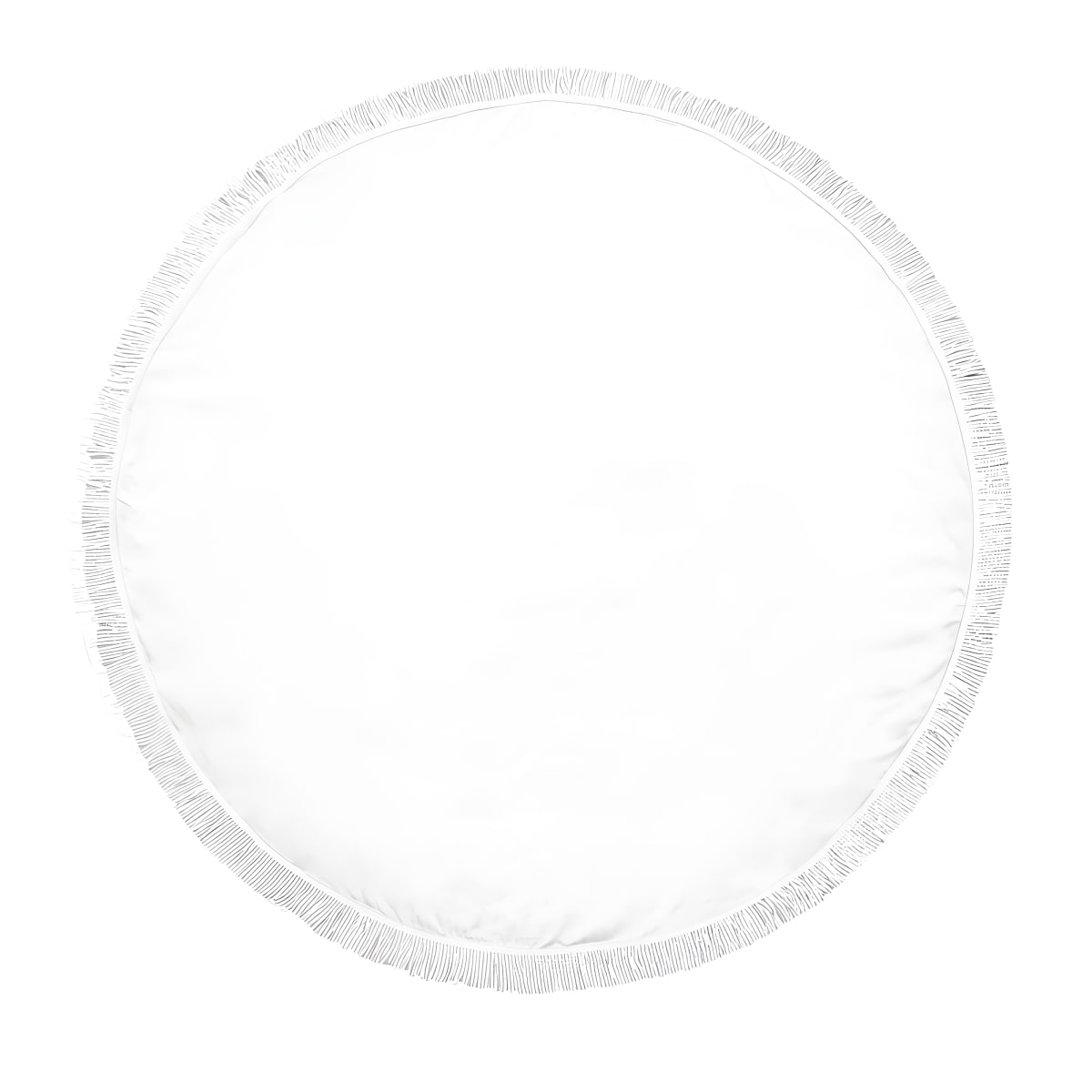 מגבת חוף עגולה לבנה עם עיצוב פרנזים ענקית