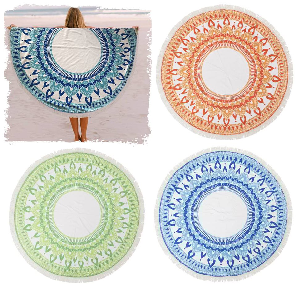 מגבת חוף עגולה ענקית עם פרנזים - מתנה עסקית ייחודית
