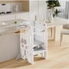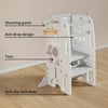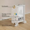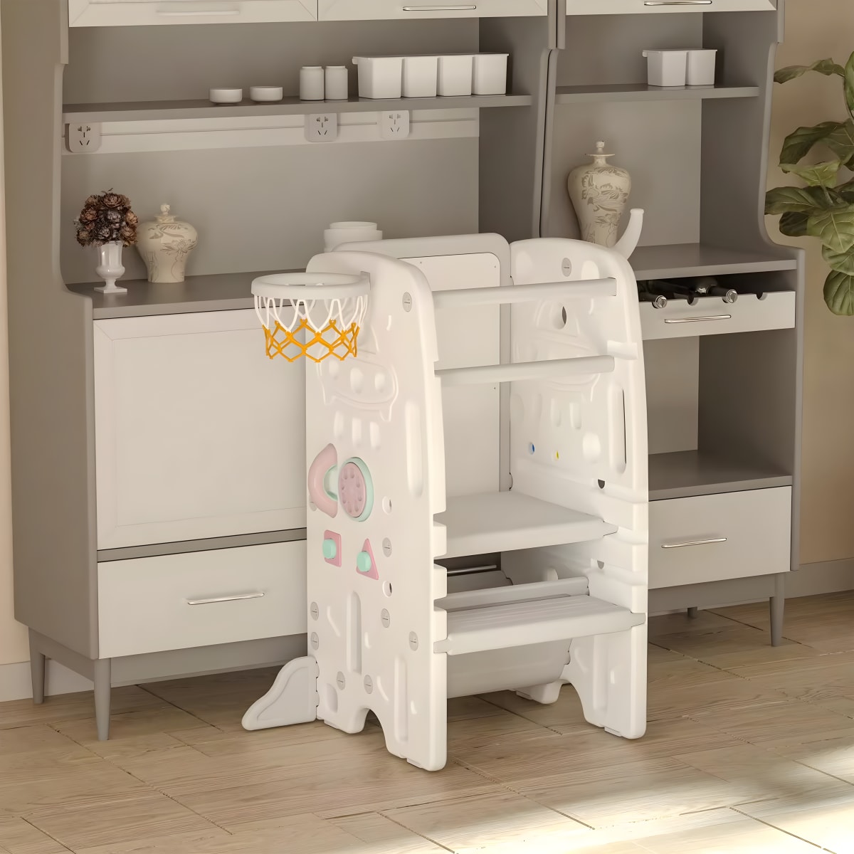 This interactive learning tower, inspired by Montessori principles, offers experiential and independent learning that engages both parent and child in activities like cooking in the kitchen and creating. The tower features customizable step height with 4 settings and slip-resistant steps. It includes a basketball hoop game, ring toss, drawing board with markers and eraser, and sensory development games. Easy to assemble and disassemble, it can be effortlessly moved around the home. Designed to strengthen independence and the bond between parent and child in various home activities such as cooking, washing, and tooth brushing.