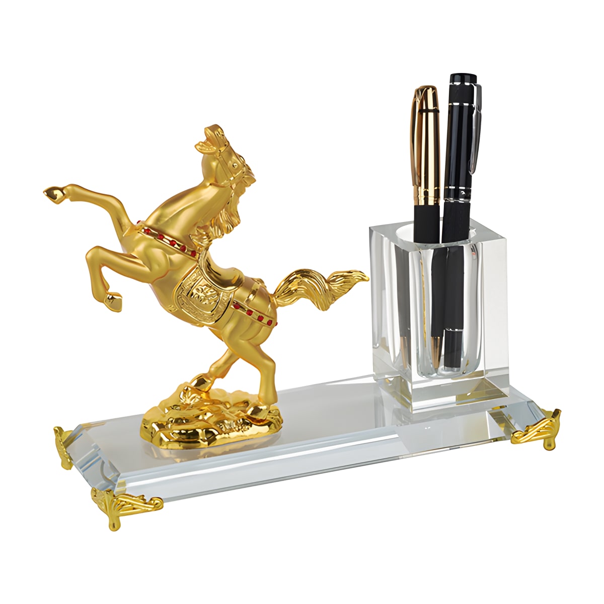 מעמד קריסטל סוס מוזהב עם מחזיק לעטים יוקרתי