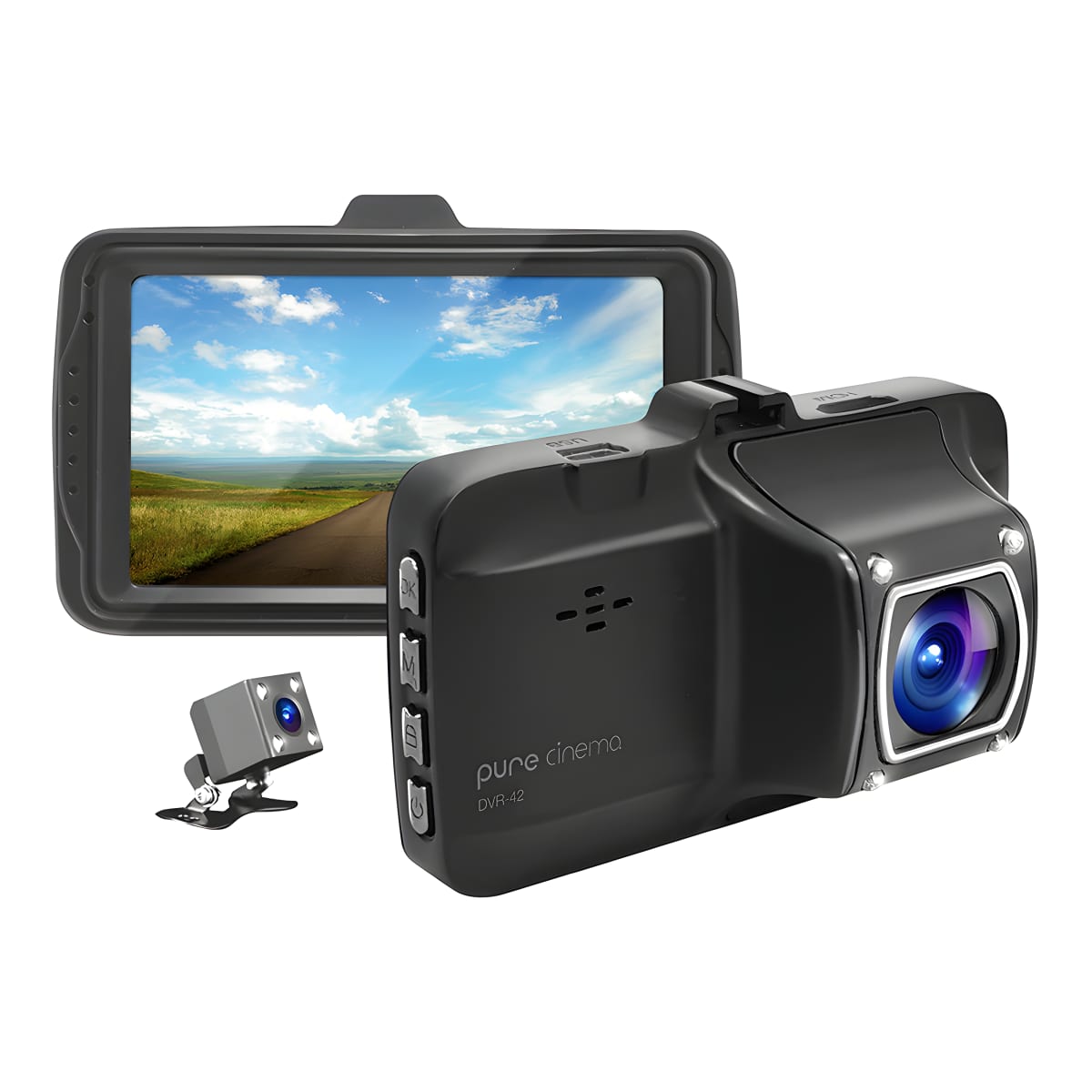 מצלמת רכב מתקדמת עם מסך ''3 ומצלמה אחוריתבאיכות P720 עם רזולוציית וידאו של 1280x720/25fps להקלטות חדות וברורות.מסך LCD בגודל ''3 לצפייה נוחה