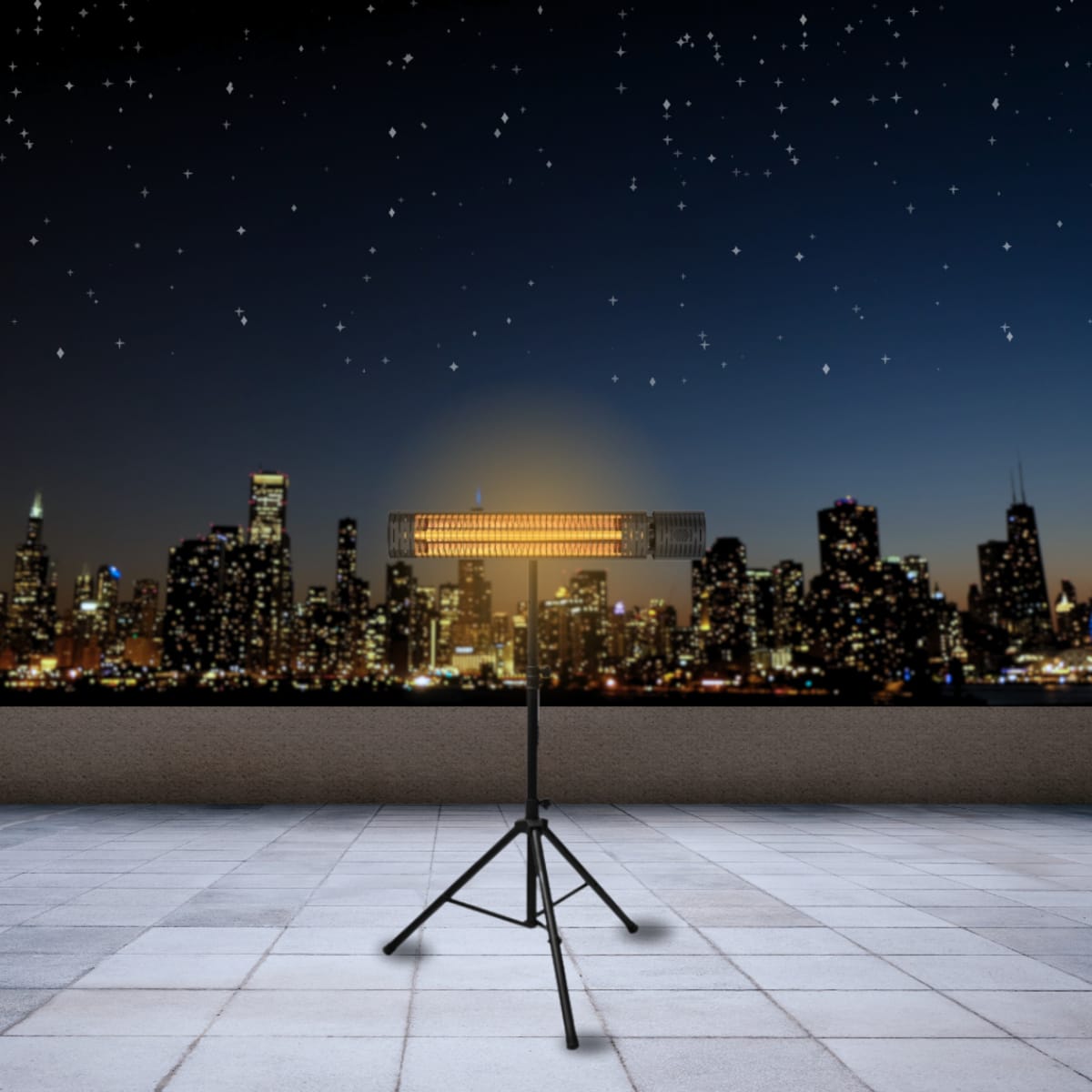 מקרן חום עוצמתי לכל מטרה עם עמידות גבוהה לשימוש בפנים ובחוץ. מתאים לחללים עד 12 מטר מרובע, עם ויסות חום אישי 1000W/2000W. כולל חצובה לניידות