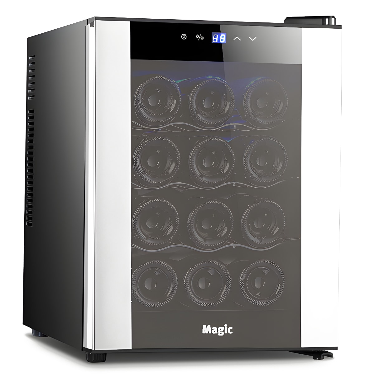 גלה את מקרר היין הדיגיטלי MAGIC בנפח 33 ליטר, בעל קיבולת של 12 בקבוקים. מקרר יין זה משתמש בטכנולוגיית קירור תרמו אלקטריק לצריכת חשמל מינימלי