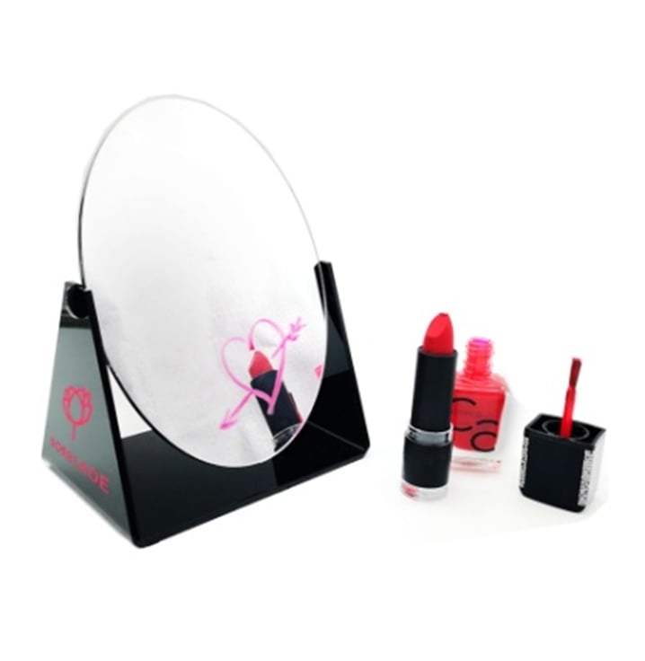 מראת אליפסה מעוצבת מפלסטיק עמיד בעובי 3 מ"מ, בשילוב מראת פלסטיק. מידות: 15.5X12X8 ס"מ. מתאימה למיתוג צבע יחיד. מגיעה ללא תכולה.
