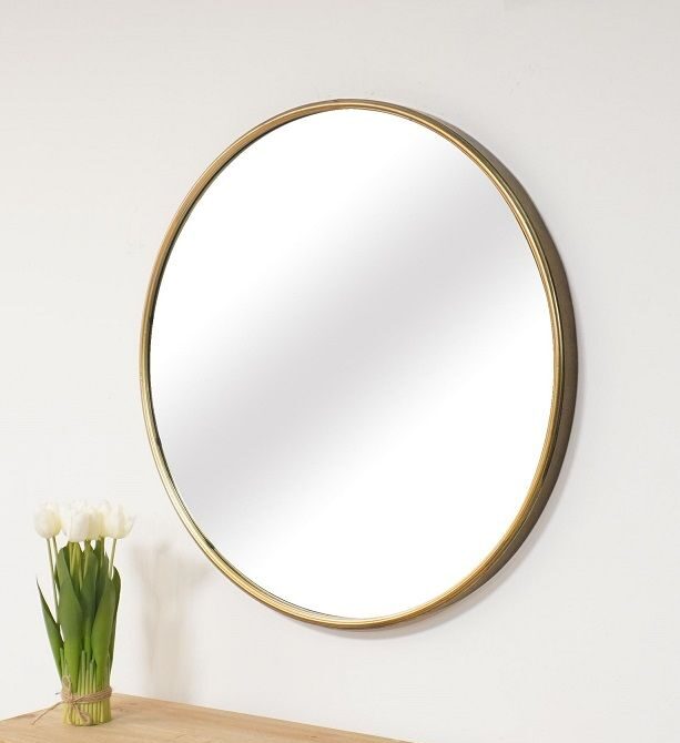 מראת קיר מעוצבת בקוטר 85 ס"מ עם מסגרת אלומיניום בזהב עתיק