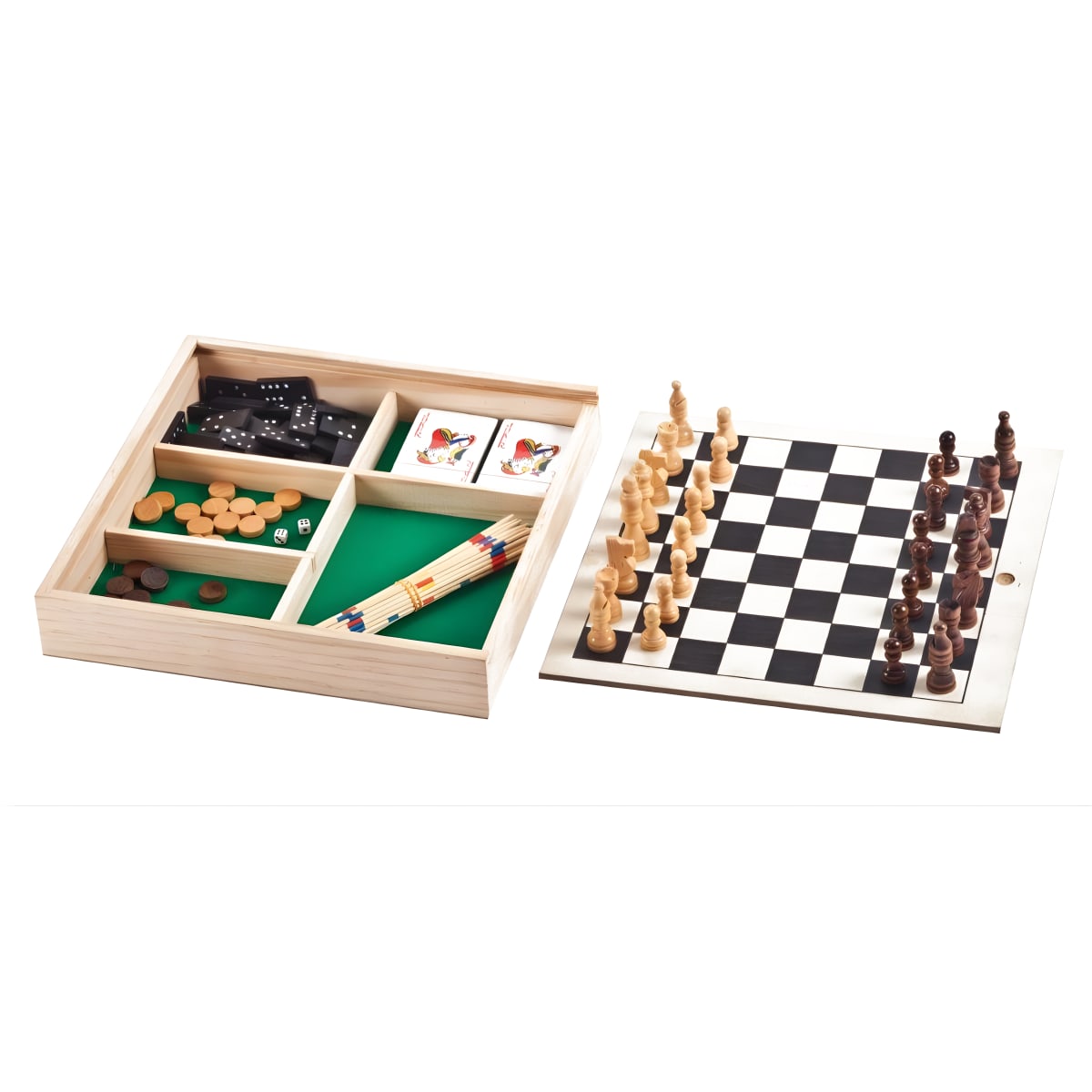 Enjoy evenings full of fun with the 4-in-1 game box including chess, checkers, backgammon, and cards. Suitable for the whole family, made of