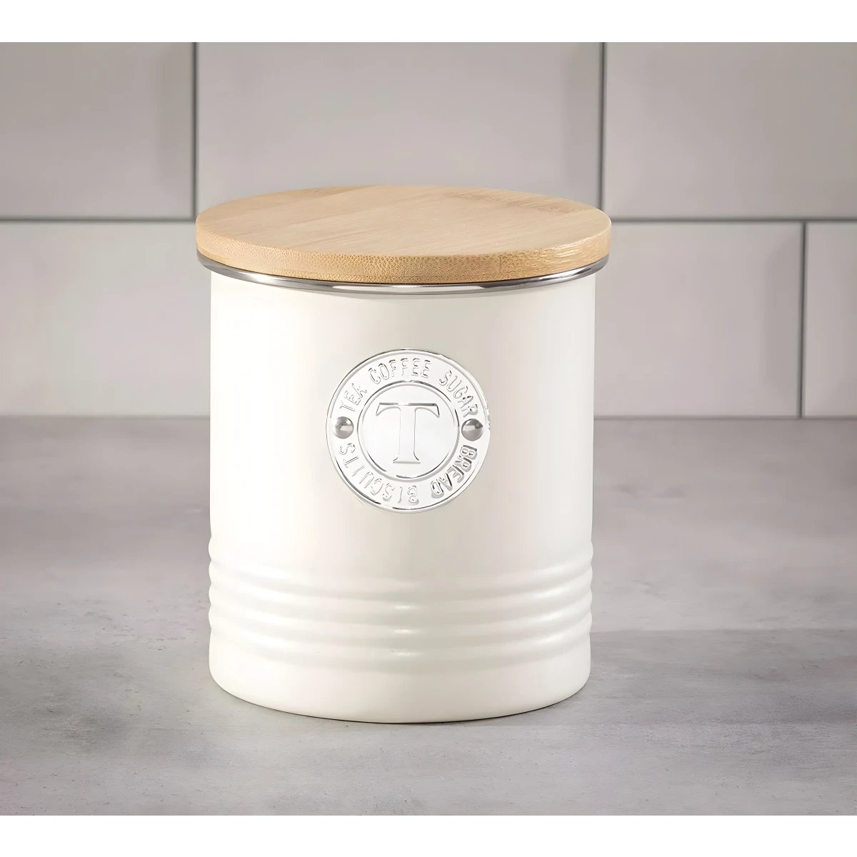 Upgrade your kitchen with a round ceramic storage set designed for coffee, sugar, and tea. Features a food-safe inner coating and a bamboo l
