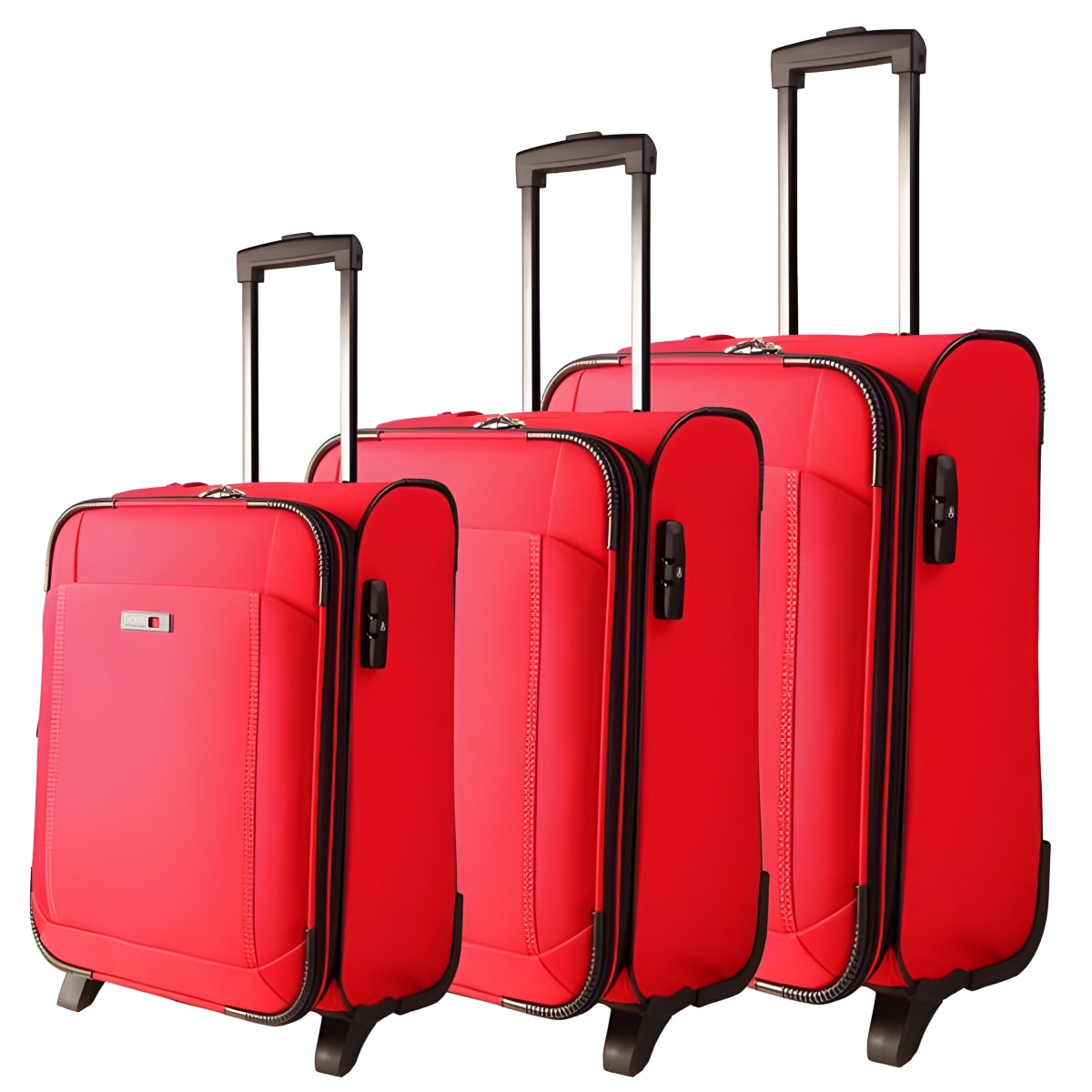 סט מזוודות טרולי אדומות עם גלגלי גומי