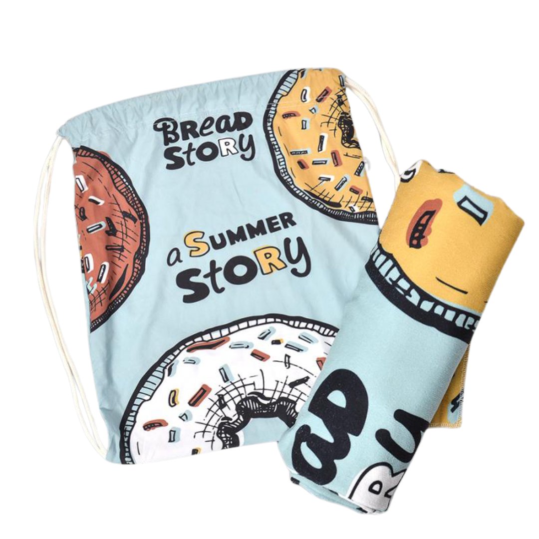 סט קיץ מושלם הכולל מגבת חוף רכה ותיק גב עם שרוכים בעיצוב תואם.