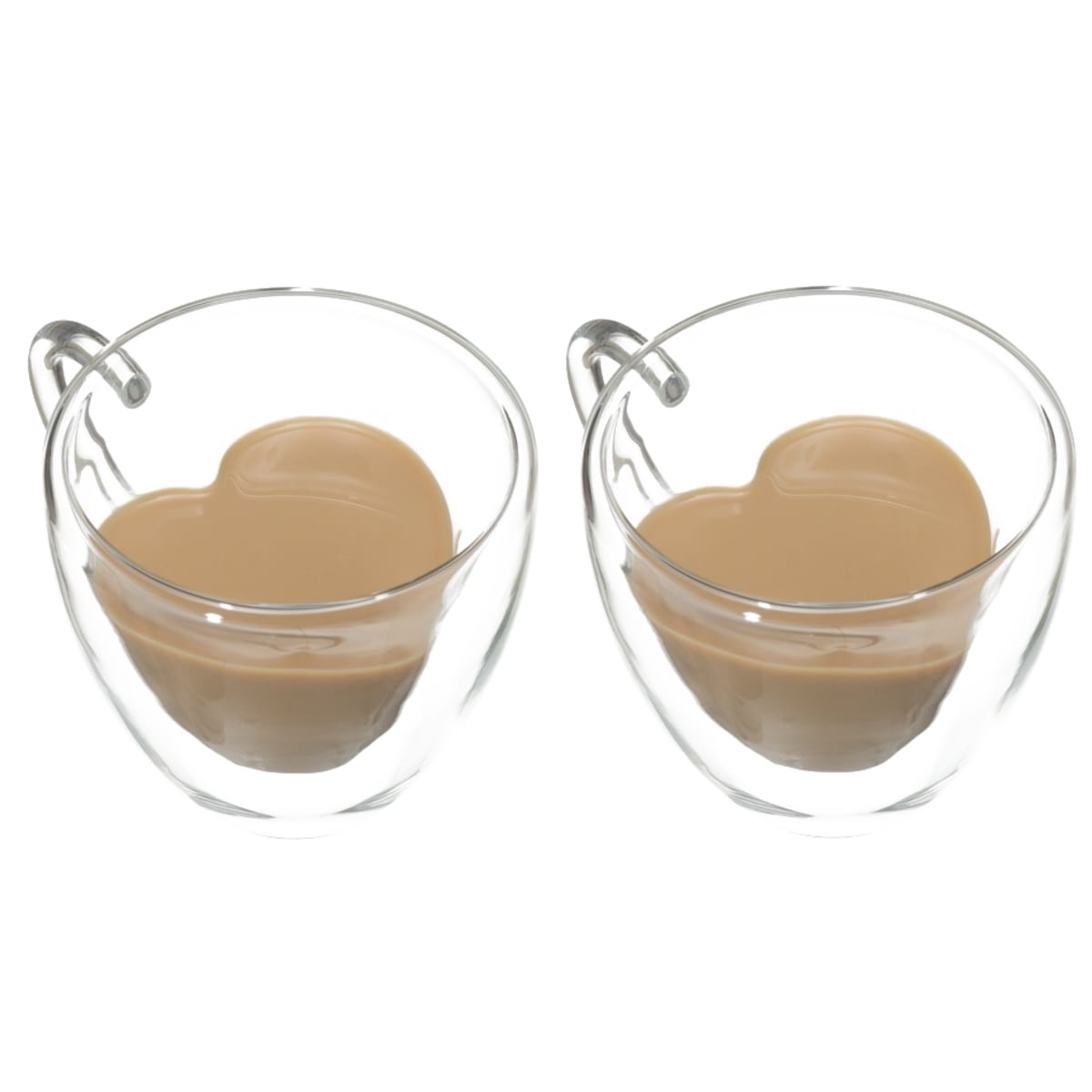 Set of 2 Double Glass Mugs with Heart Effect - Drink with Love