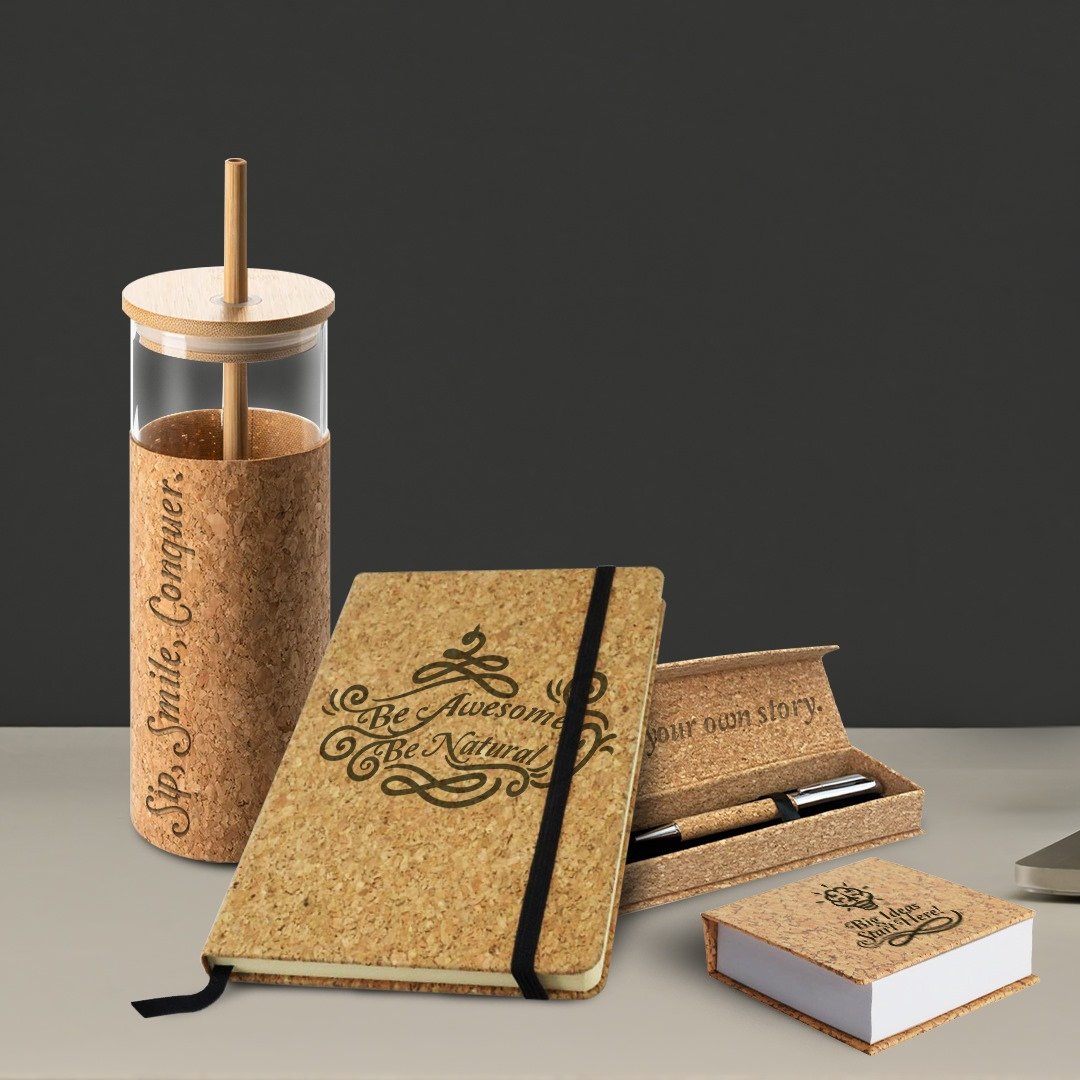חווית כתיבה מהודרת ואקולוגית עם ערכת אביזרי שולחן יוחדת. כל ערכה כוללת מחזיק עפרונות מזכוכית ועץ, פנקס ממוחזר ועט מעוצב. מתנה מושלמת לחובבי אקו.