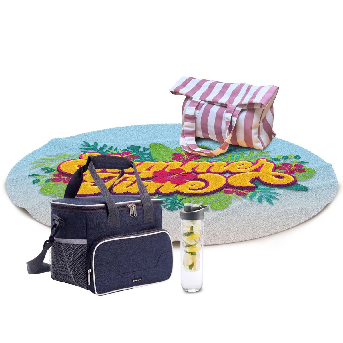 Ultimate Beach Set: Round Towel, Matching Tote, Cooler & Infuser Bottle