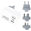 Discover the ultimate international charging set for all your travels! This universal power adapter includes 5 components and a built-in electronic charger with 3 output ports of 3.4 Amperes. Perfect for iPhone, iPad, iPod, and tablets. Capable of charging 3 devices simultaneously, with protection circuits against overcharging and short circuits. Suitable for ISR, AU, US, UK, EU, and more. Comes with a hard carry case with zipper closure. CB tested and approved in Germany.