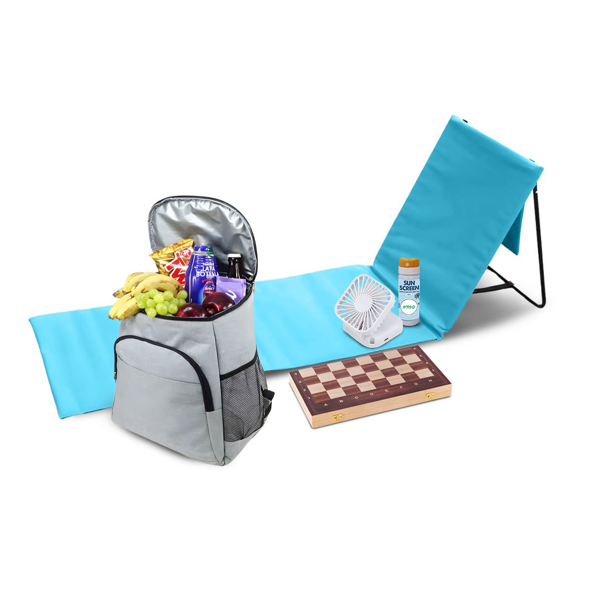 עורכים יום כיף? ערכת הקיץ המושלמת שלנו תאפשר לכם ליהנות כל היום, בכל מקום! החבילה כוללת מזרן שכיבה נוח, תיק גב צידנית מבודד, מאוורר נייד, קר