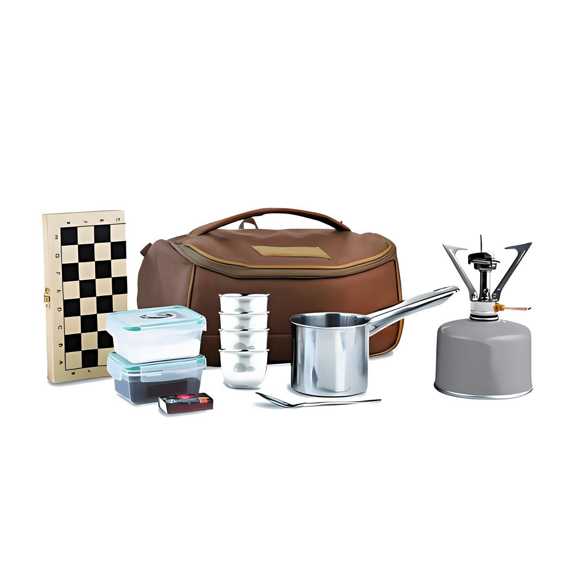 שדרגו את חווית הקפה שלכם בטבע עם ערכה מלאה שכוללת: