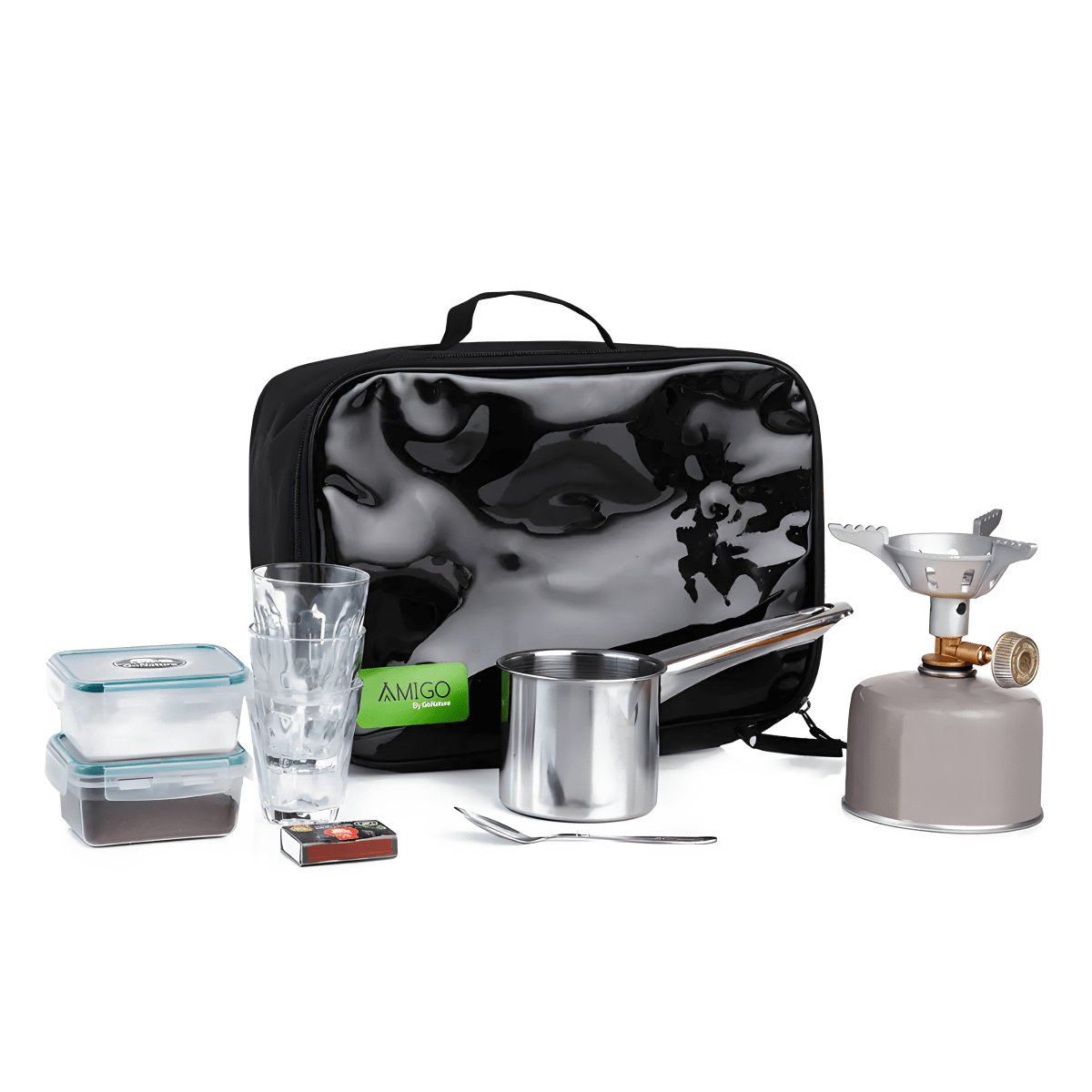 Enhance your outdoor coffee experience with this comprehensive set including: