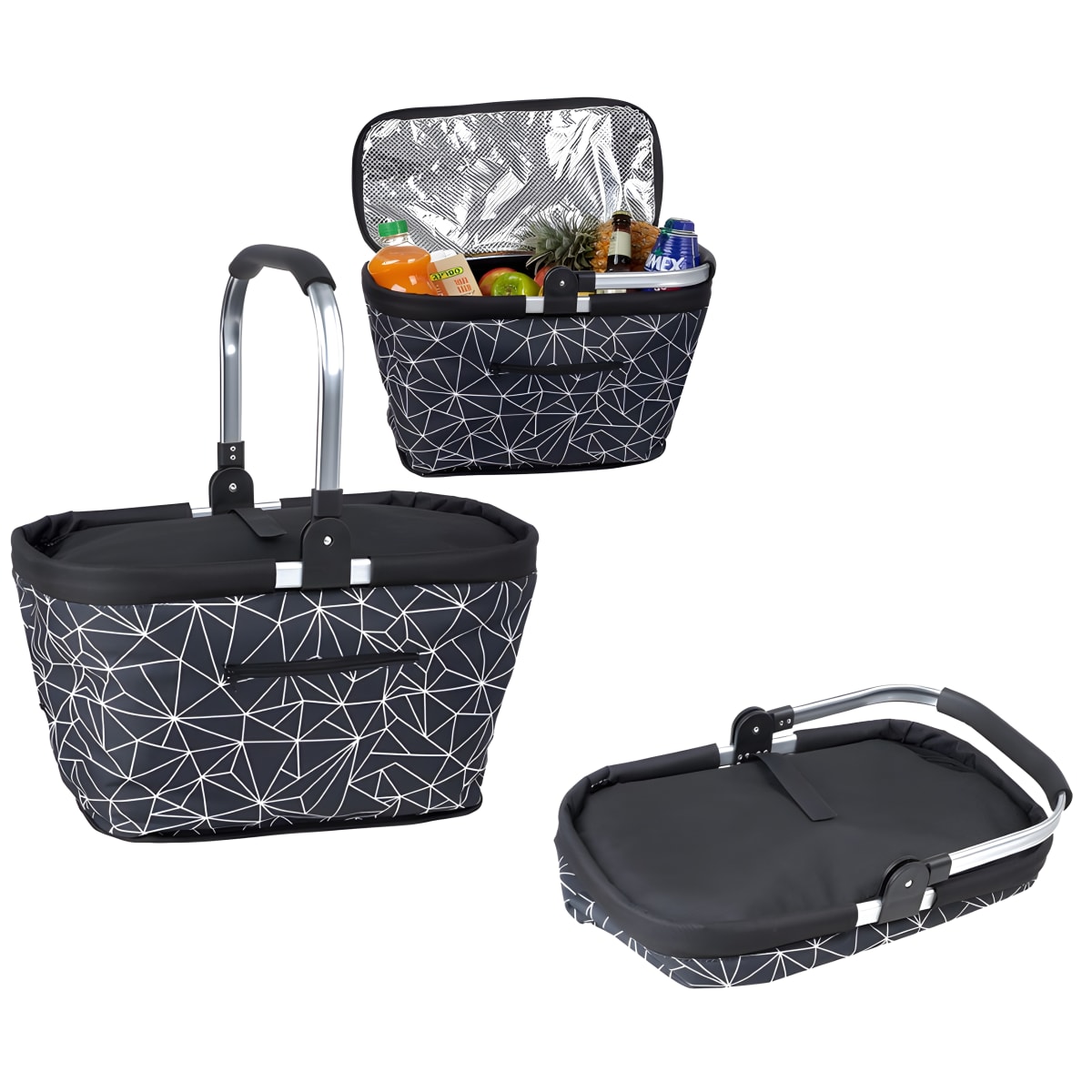 This 30-liter cooler is perfect for picnics and trips, featuring a convenient aluminum handle. Dimensions: 48x28x27 cm and a sleek black col