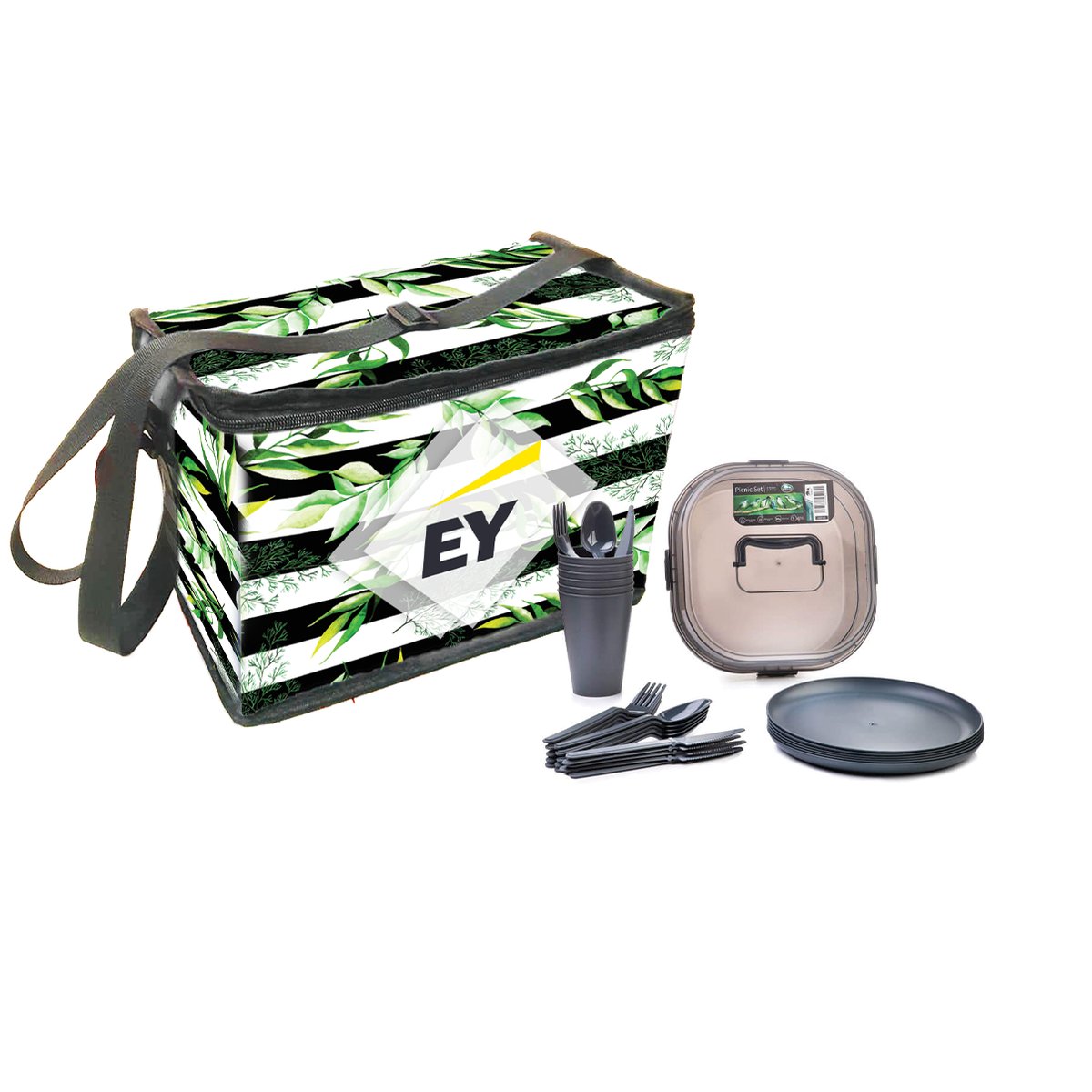 הפכו את הפיקניק שלכם למושלם עם מארז הכולל צידנית מעוצבת בהדפס צבעוני מלא בהתאמה אישית ומיוצר כחול לבן. בנוסף, תקבלו סט כלים רב פעמי איכותי המתאים ל-6 סועדים. פתרון אידיאלי לפיקניק משפחתי או חברתי, עם עמידות ונוחות מירבית.