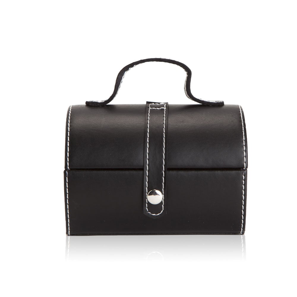 קופסת תכשיטים מעור עם מראה ותאים מגוונים