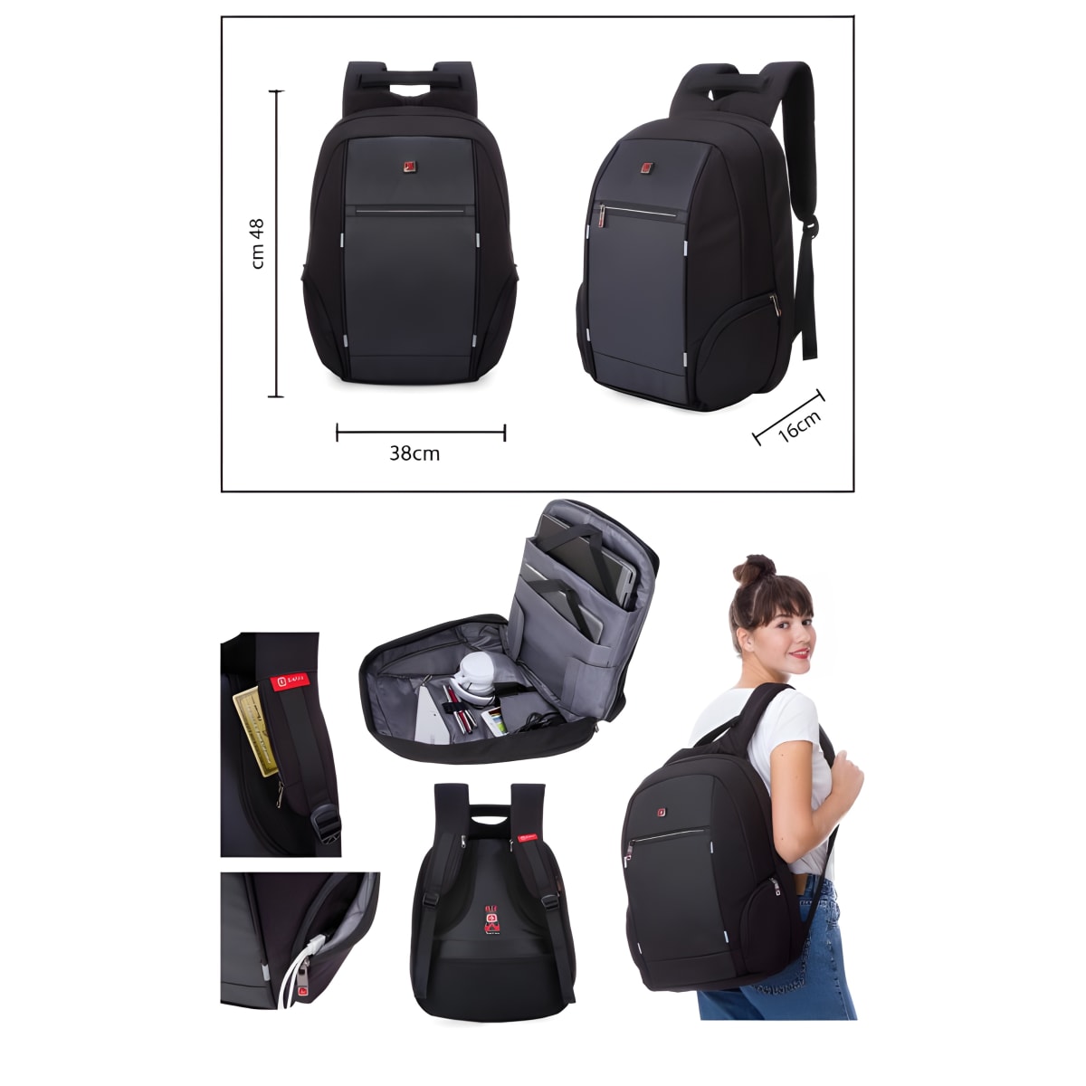 גלה את תיק הגב היוקרתי למחשב נייד של Swiss בדגם MANHATTAN, עם עיצוב מתקדם המונע גניבות. התיק עשוי מחומר PU דוחה מים וחזק, אידיאלי לנשיאה יומ