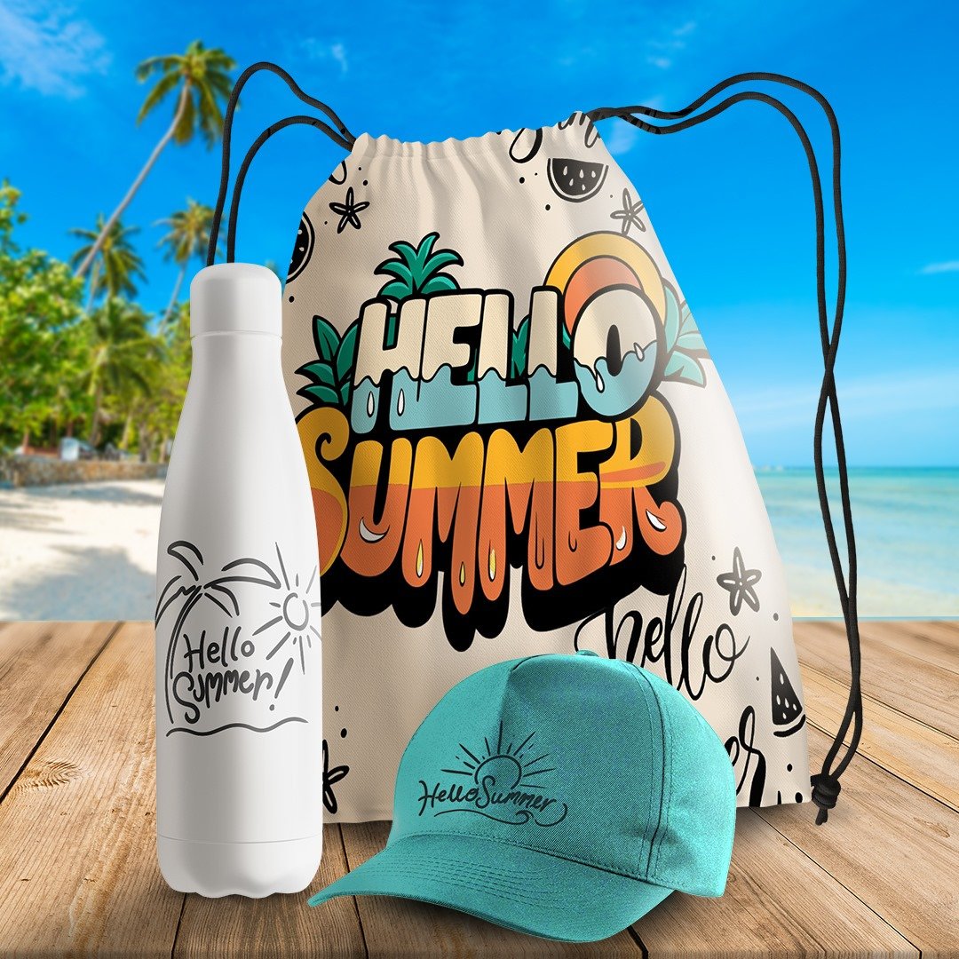 תיק חוף קיצי ובקבוק מים 'היי קיץ'