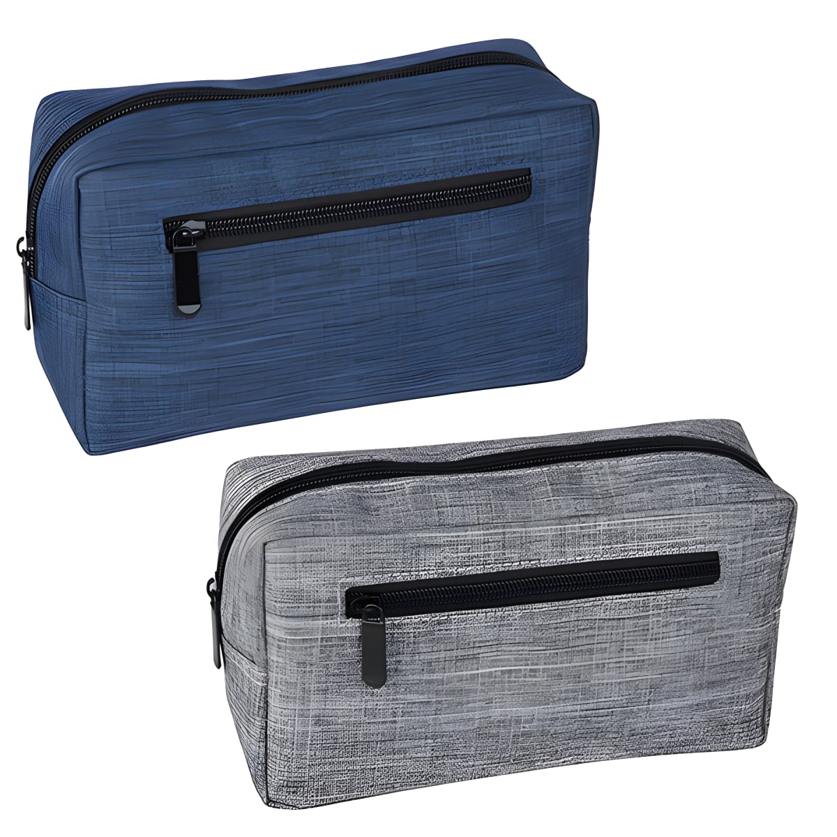 תיק כלי רחצה עם כיס רוכסן קדמי - לבחירה בצבעים אפור וכחול