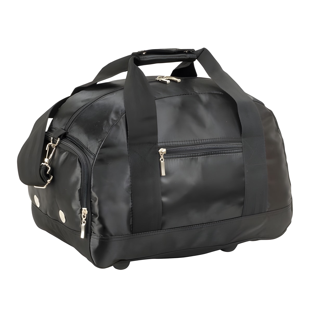Women's sports bag featuring a spacious main compartment, ventilated shoe pocket, and a bottle holder. Includes a small front pocket and a r