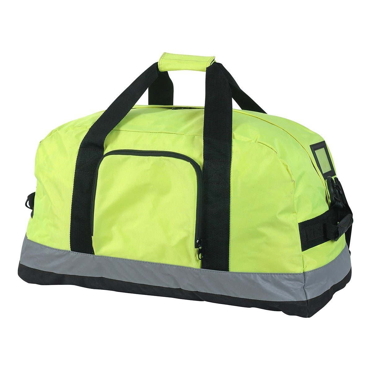 The Seattle Radiant Work Bag is stylish and functional for carrying work equipment. Featuring a spacious main compartment, easy-access front pocket, durable base, and Velcro-sealed handles. Designed with standard reflective stripes on all four sides and a name tag. Detachable shoulder strap included. Dimensions: Height 32 cm, Width 59 cm, Depth 36 cm, Volume 50 L. Option for logo printing with silk/ process/ embroidery methods. Meets international standards and client specifications. Customizable in colors and straps.