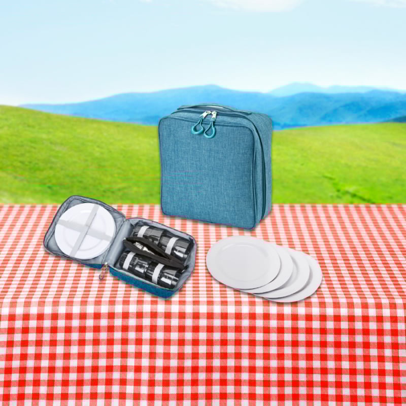 תיק פיקניק וטיולים מושלם עם כלי הגשה לארבעה