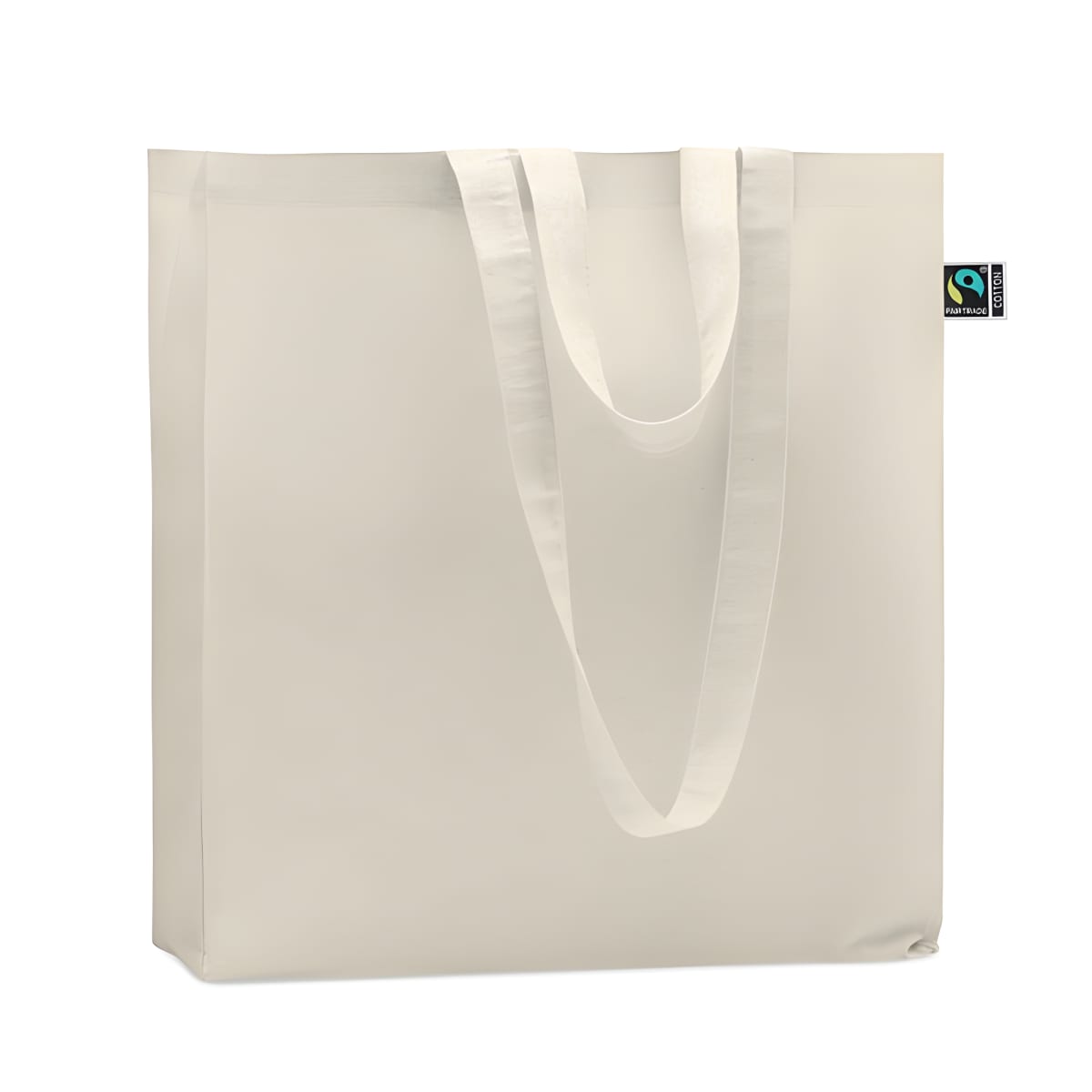 Premium shopping bag with long handles and a gusset, made from Fairtrade cotton, weighing 180 gsm. Ideal for daily shopping and eco-consciou